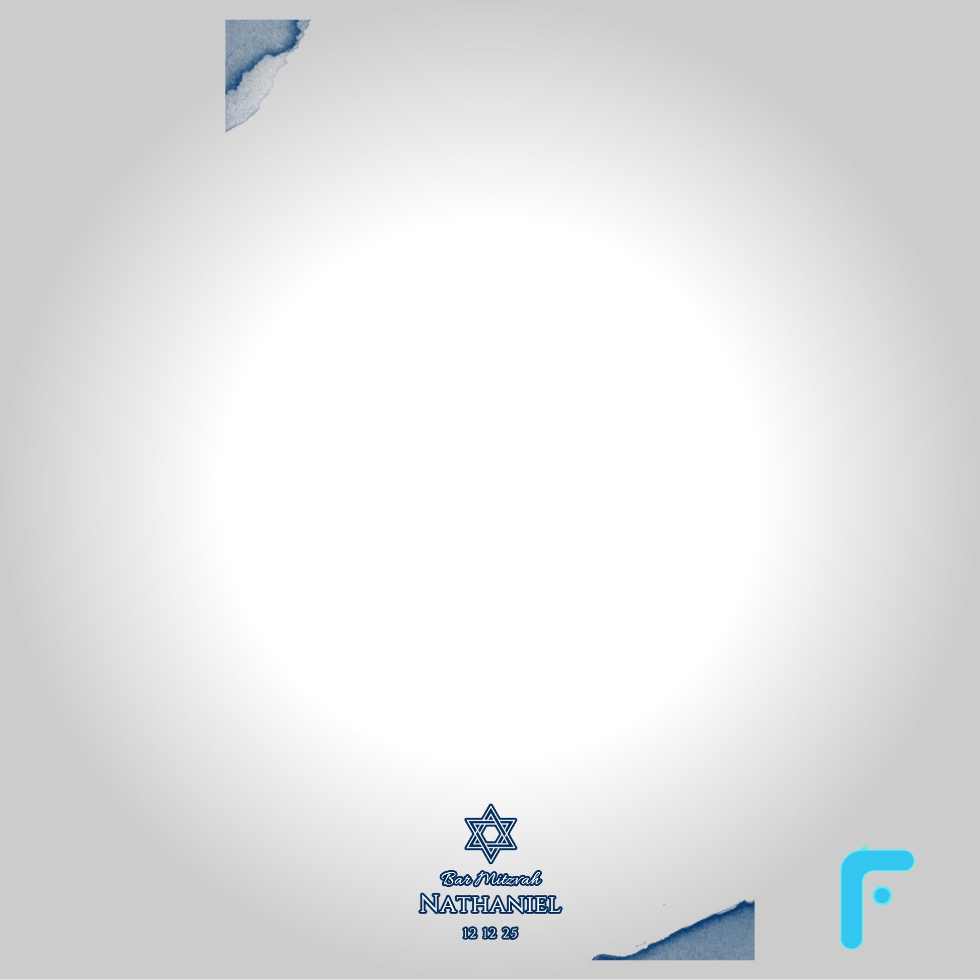Elevate your celebration with the Blue Bar Mitzvah 360 Video Booth Overlay. This elegant template provides the perfect frame for slow-motion video captures of this momentous occasion.