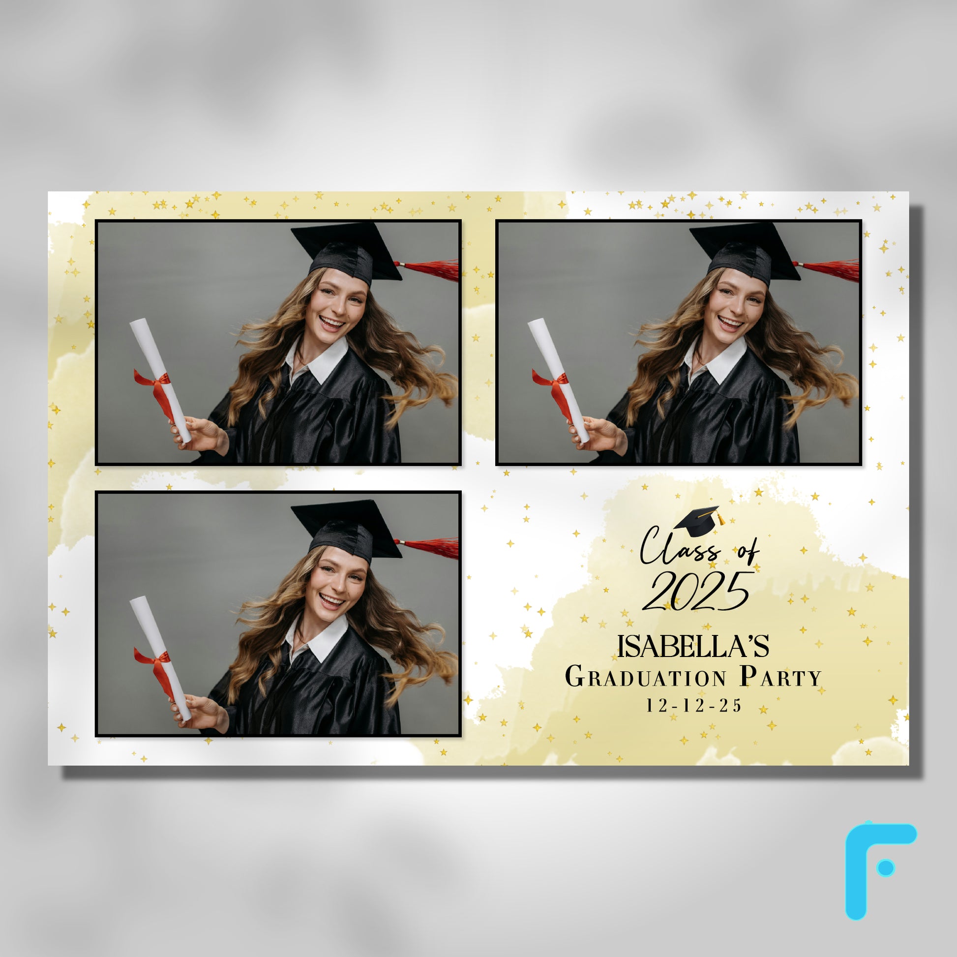 Charcoal Watercolor Graduation Photo Booth Template - Digital Download