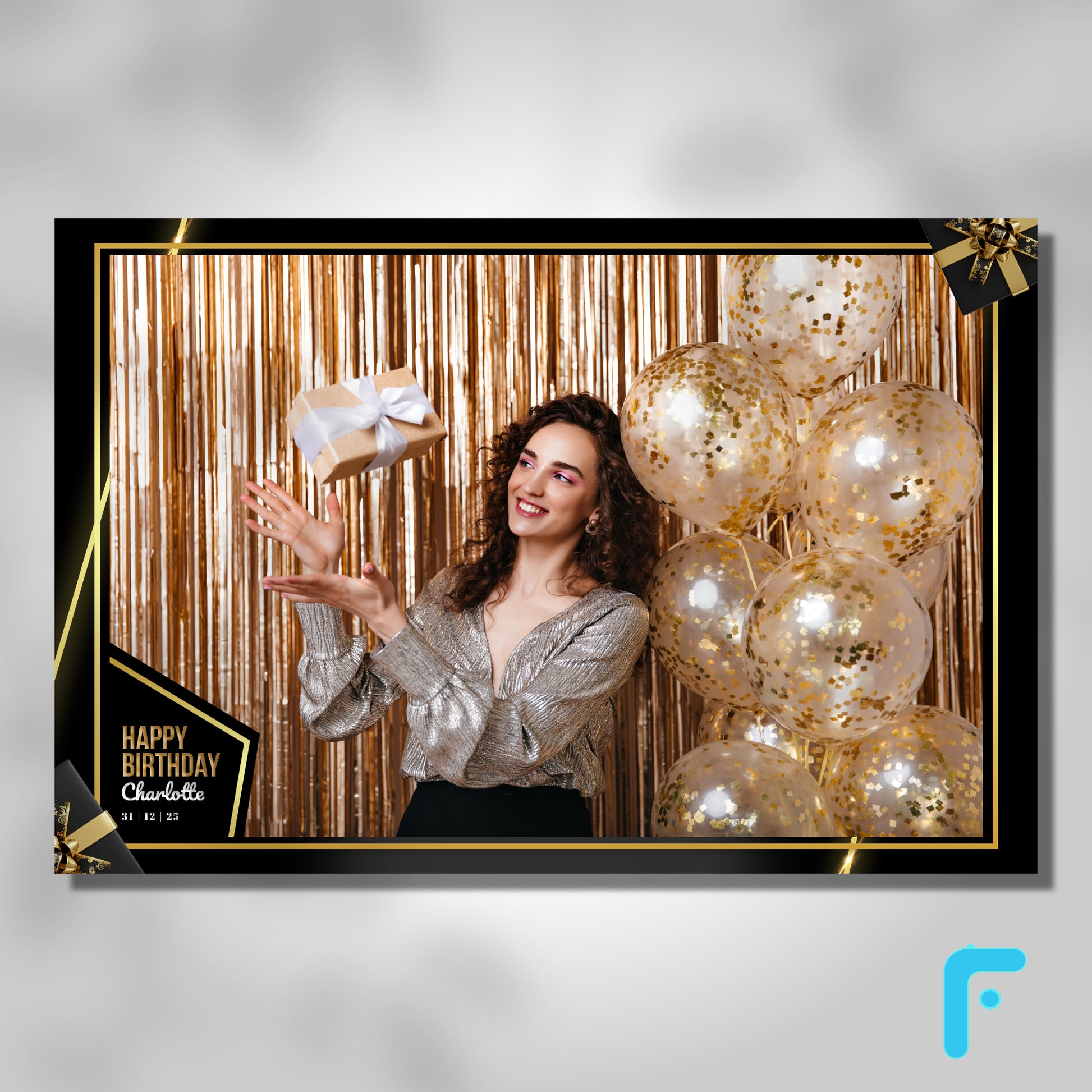 Celebrate in luxurious style with our Golden Hour Birthday Photo Booth Template. This elegant design is perfect for upscale birthday parties, milestone celebrations, and glamorous events for adults and teens alike.