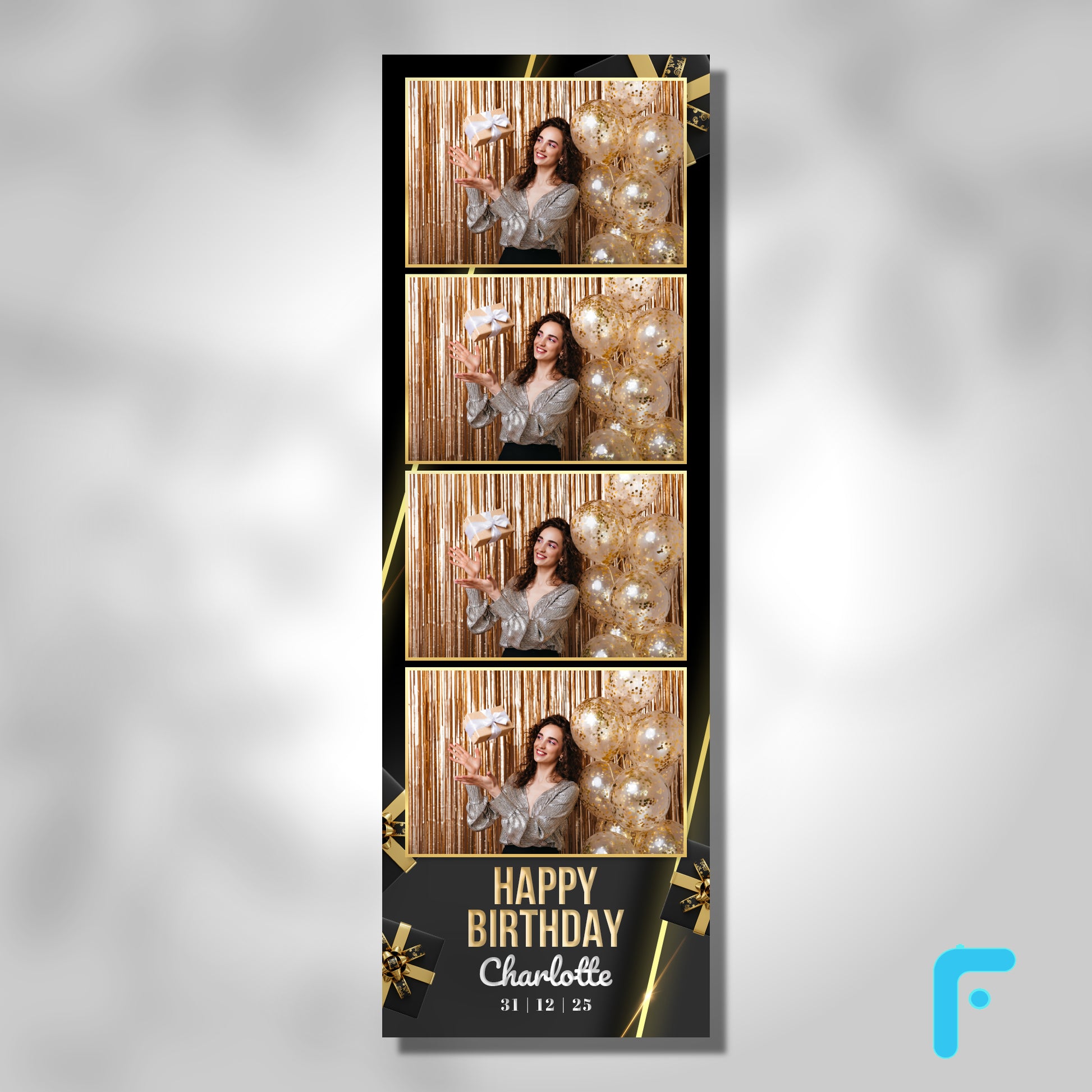 Celebrate in luxurious style with our Golden Hour Birthday Photo Booth Template. This elegant design is perfect for upscale birthday parties, milestone celebrations, and glamorous events for adults and teens alike.