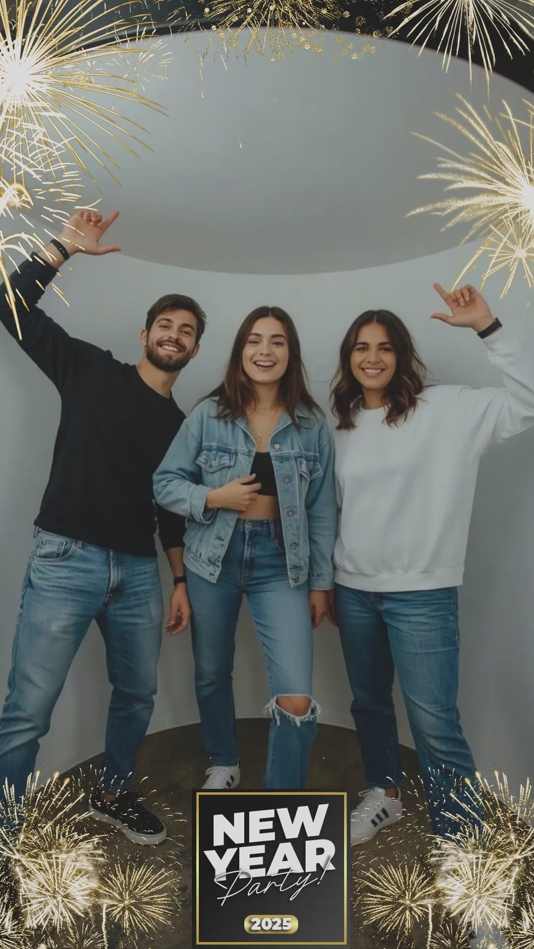 Frame your exciting midnight moments with the **New Year's Eve Celebration 360 Video Booth Overlay**. This vibrant template is perfect for capturing the high-energy countdown and party atmosphere.