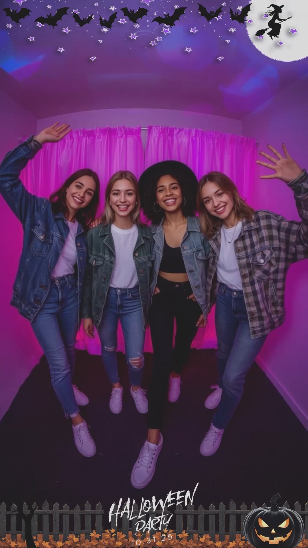 Add a spellbinding frame to your slow-motion captures with the Purple Witch Halloween 360 Video Booth Overlay. This vibrant template ensures your spooky videos capture the dark magic of the night.