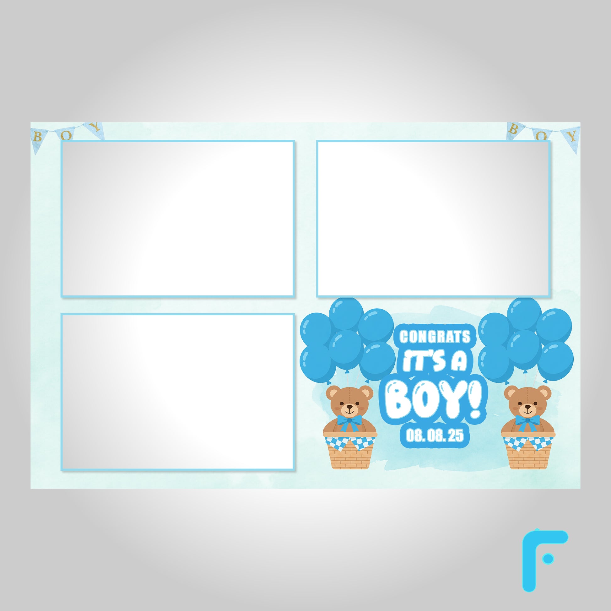 Soft Blue Watercolor Baby Boy Photo Booth Template - Digital Download