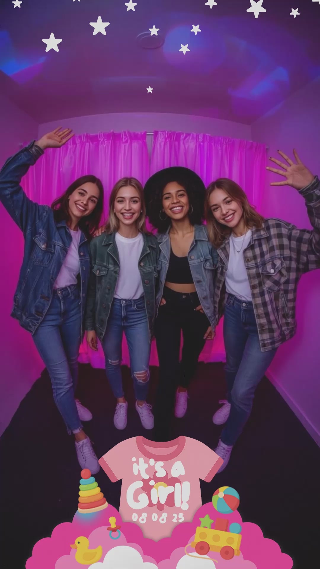 Starry Pink Toy Baby Girl 360 Video Booth Overlay - Digital Download